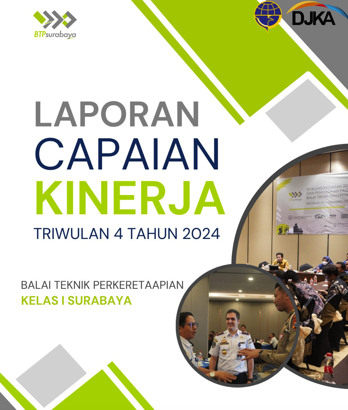Laporan Capaian Kinerja Triwulan 4 Tahun 2024 Balai Teknik Perkeretaapian Surabaya memuat mengenai realisasi pelaksanaan kegiatan, analisa pencapaian target maupun kegagalan pencapaiannya, serta rekom