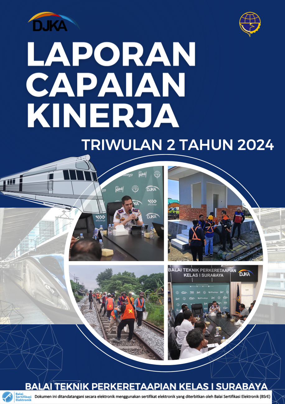 Laporan Capaian Kinerja Triwulan II Tahun 2024 Balai Teknik Perkeretaapian Surabaya memuat mengenai realisasi pelaksanaan kegiatan, analisa pencapaian target maupun kegagalan pencapaiannya, serta reko