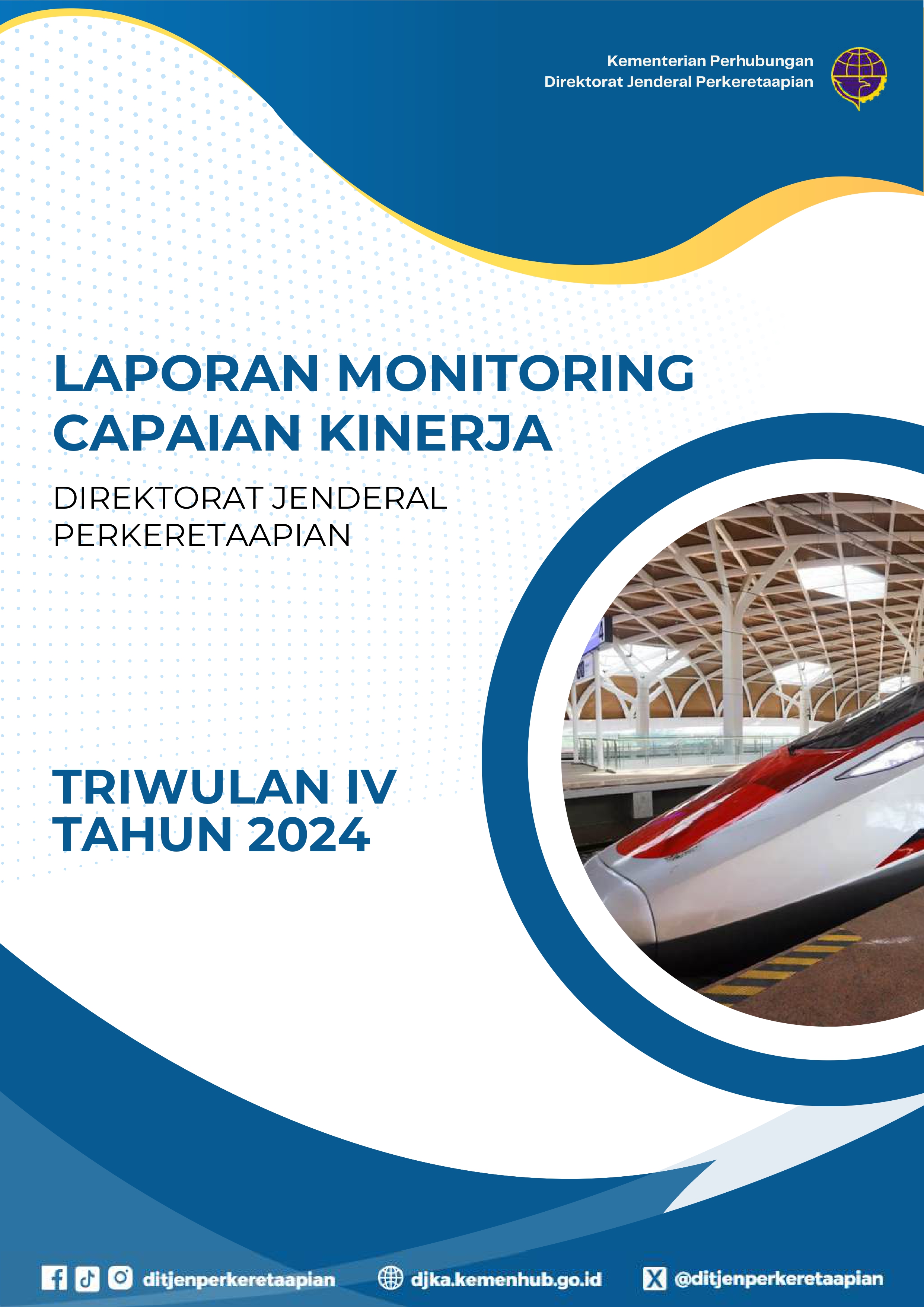 Pelaksanaan pemantauan kinerja Ditjen Perkeretaapian dituangkan dalam Laporan Monitoring Kinerja Triwulan yang mencakup realisasi kinerja dalam periode triwulan terhadap pencapaian target kinerja yang telah ditetapkan melalui Perjanjian Kinerja. Selain informasi capaian kinerja, juga diidentifikasi permasalahan/kendala serta disusun rekomendasi sebagai upaya peningkatan kinerja untuk periode berikutnya.