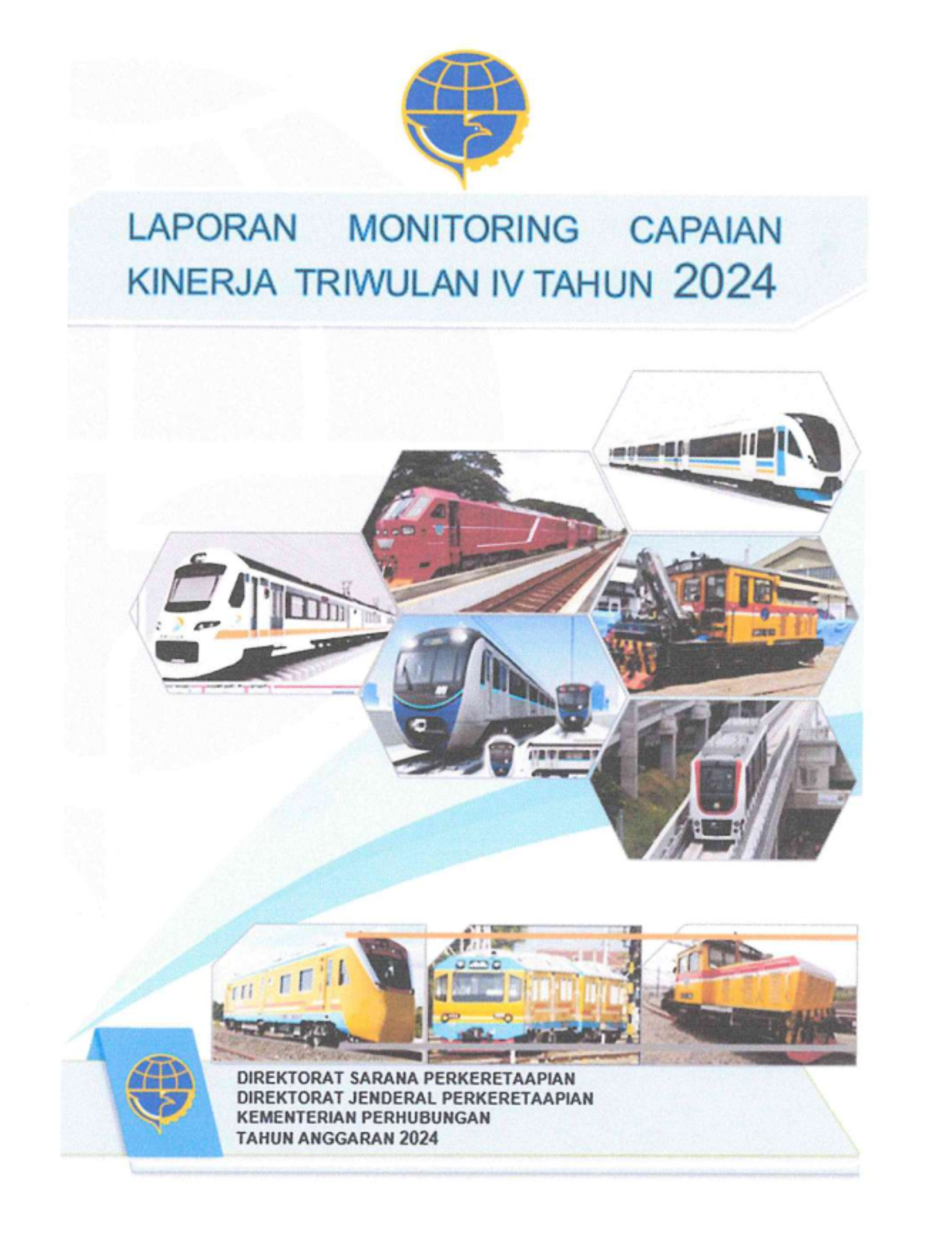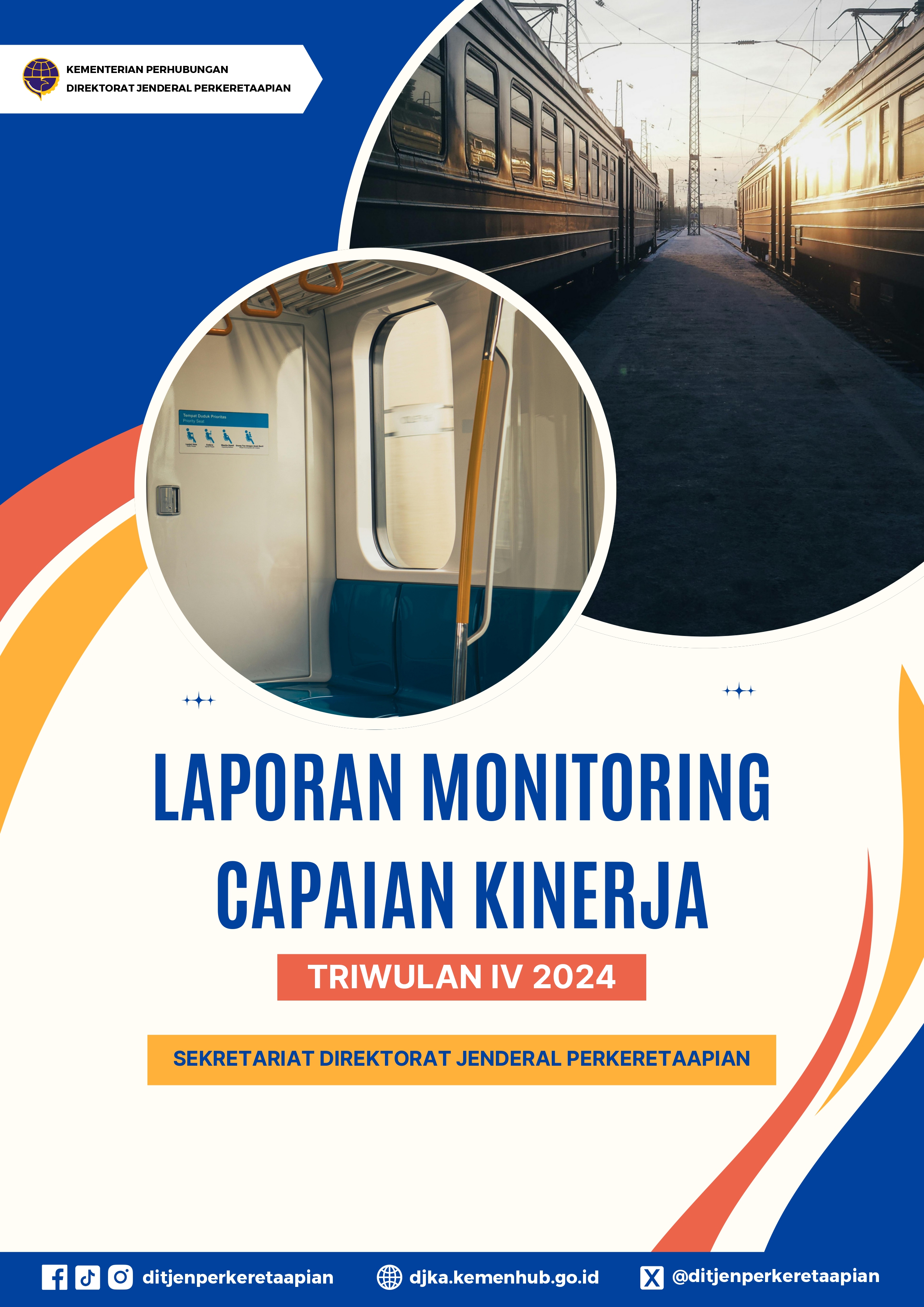 Laporan Monitioring Kinerja Sekretariat Direktorat Jenderal Perkeretaapian Triwulan IV Tahun 2024 mencakup informasi pencapaian kinerja sesuai bidang tugas sampai dengan Triwulan IV Tahun 2024, identifikasi kendala/permasalahan, benchmarking kinerja, serta penyusunan rekomendasi peningkatan kinerja sebagai upaya pencapaian target yang ditetapkan. Selain itu, pada laporan monitoring juga menyampaikan progres tindak lanjut rekomendasi peningkatan kinerja pada pelaporan kinerja periode sebelumnya.
