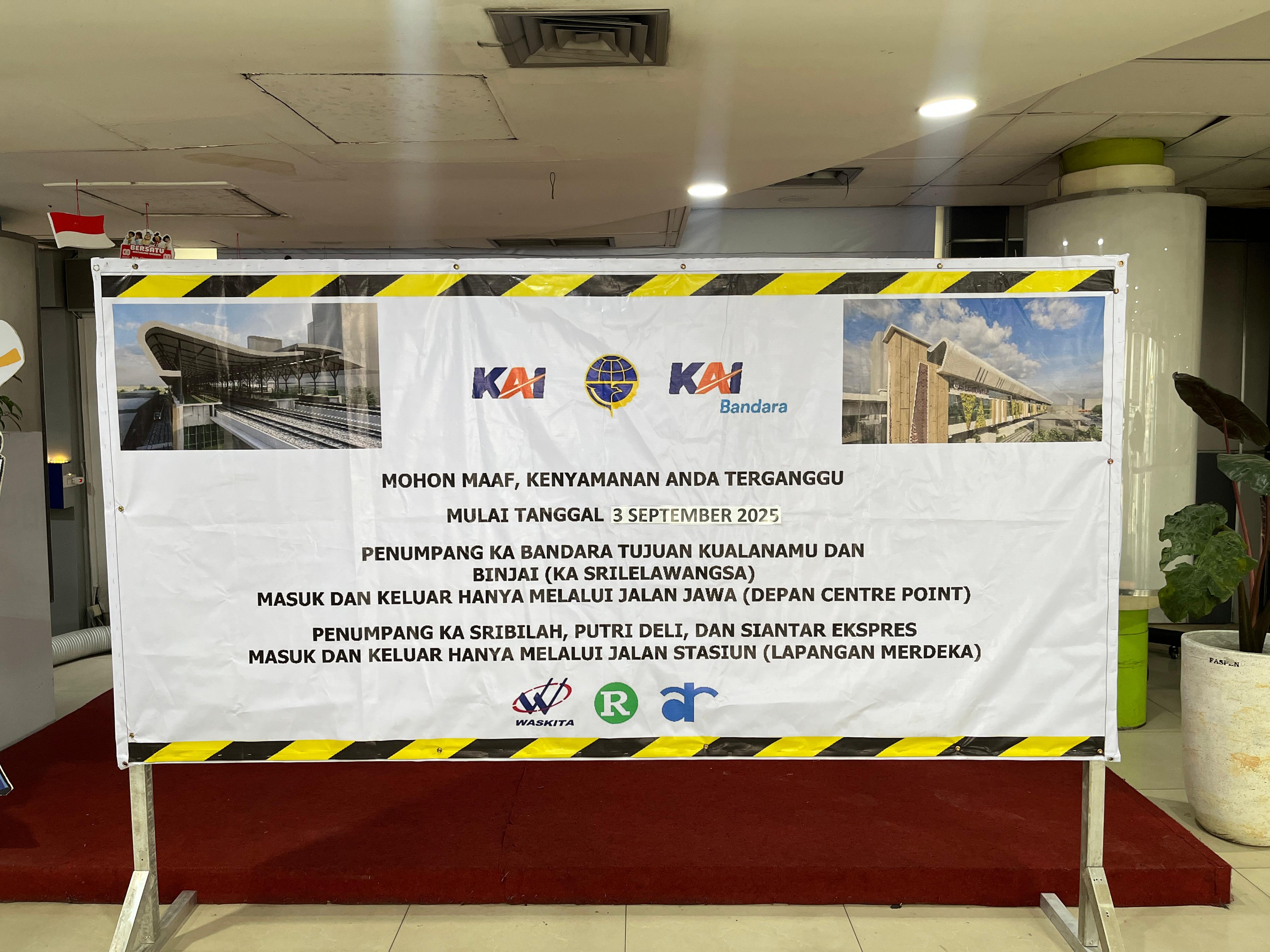 b. Stasiun KA Bandara (Railink): Penumpang KA Srilelawangsa tujuan Binjai dan Bandara Kualanamu hanya dapat masuk dan keluar melalui Jl. Jawa (depan Centre Point Mall).