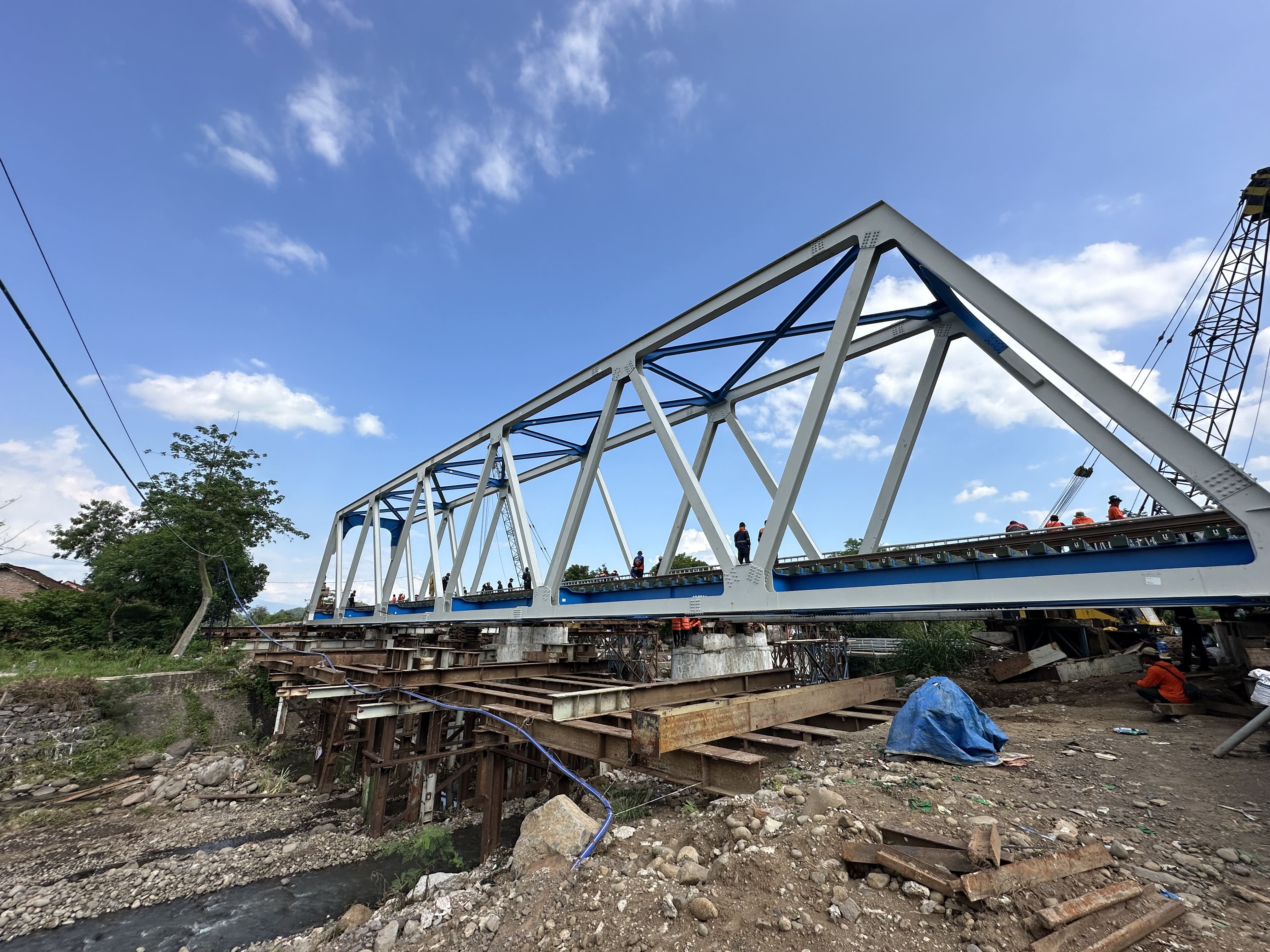 “Kami mengganti jembatan BH 312 bentang semula 40 meter (rasuk dlurung 5 meter + dinding rangka LLA 30 meter + rasuk dlurung 5 meter) menjadi jembatan WTT 60.2 meter,” ujar Dimas.